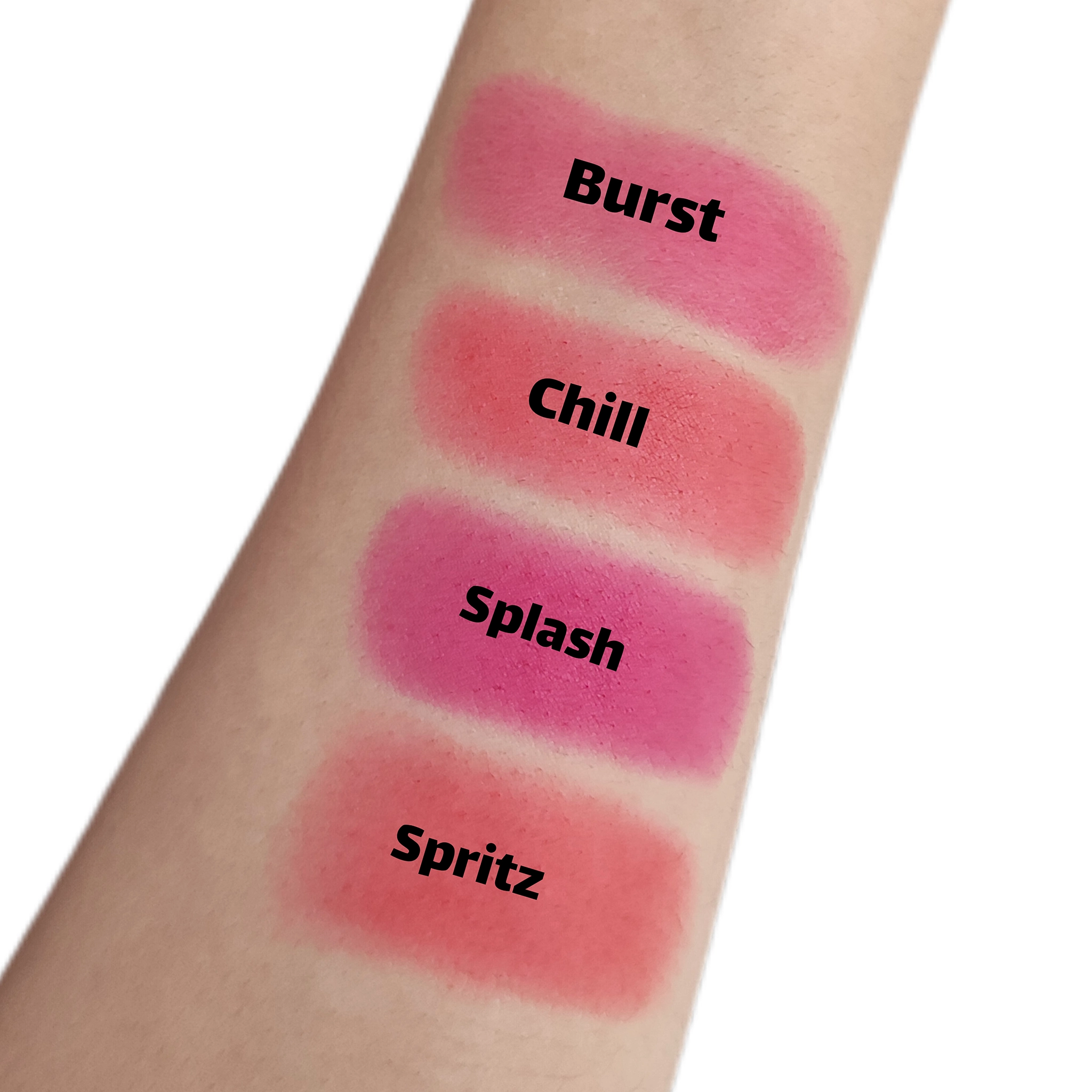 - رنگدانههای شفاف و درخشان — چهار طیف رنگی زیبا شامل Burst، Chill، Splash و Spritz برای انواع رنگ پوست و سلیقه طراحی شدهاند.